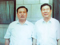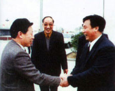 | 社會保障部鄭部長(右一)在北京親切接見董事長 | 廣電部孫部長(左一)來公司視察工作 |